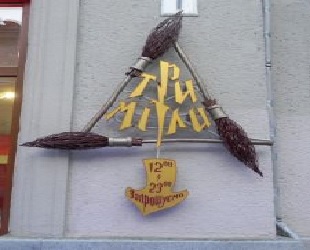 Ресторан «Три метлы» находится в городе Львове на площади Яворьского. Заведение работает с 12 дня и до 23 часов ночи. Интерьер его стилизован под произведения о Гарри Поттере. Для посетителей предоставляется возможность сфотографироваться в мантии и шляпе, как у известного персонажа, и окунуться в магический мир, который постарались воссоздать владельцы ресторана.